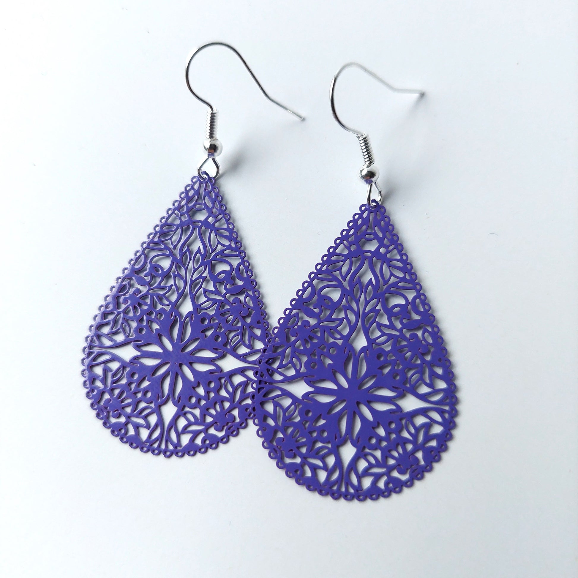 These teardrop filigree laser cut earrings and are super lightweight. Featuring an pretty intricate filigree design.